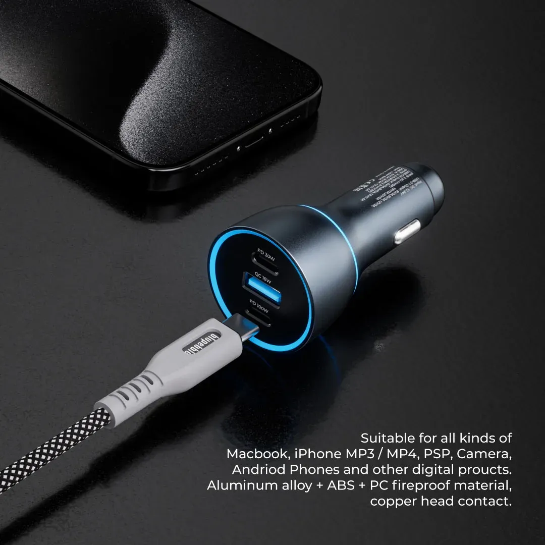 • Fast charging 130W Aluminum Car Charger 2 USB-C Ports 100W | 30W & QC18W