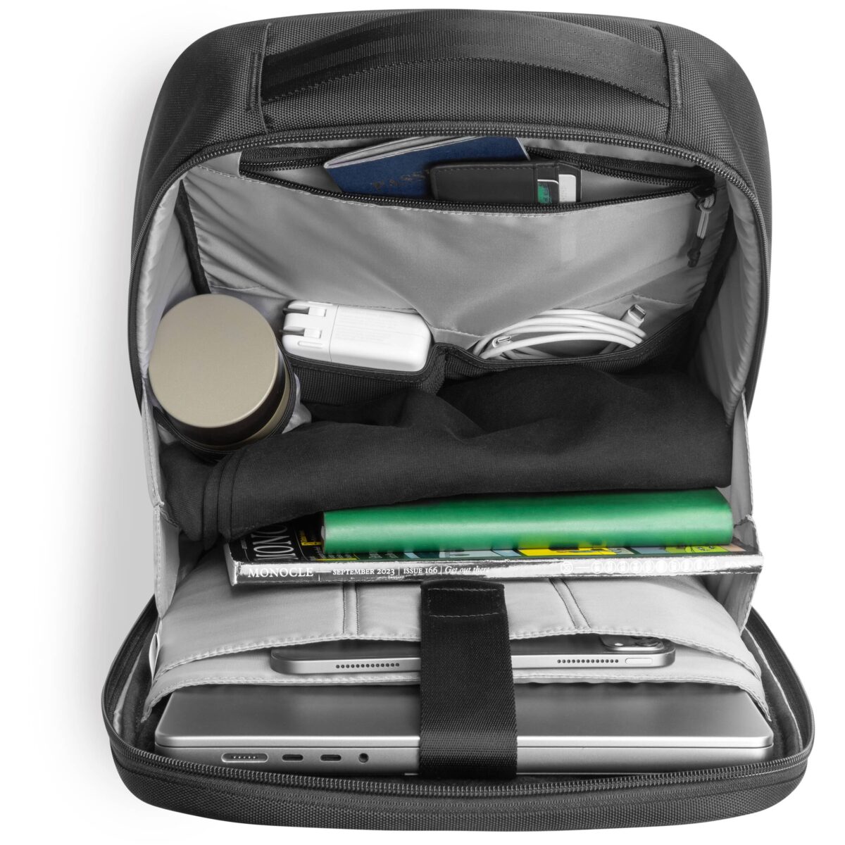An extra side-opening zipper unrevealed the designer’s ingenuity, allowing easy reach to the bottom of the main compartment to get your essentials. The laptop compartment is also direct-accessible via a waterproof zipper above the straps, providing great convenience whenever needed.