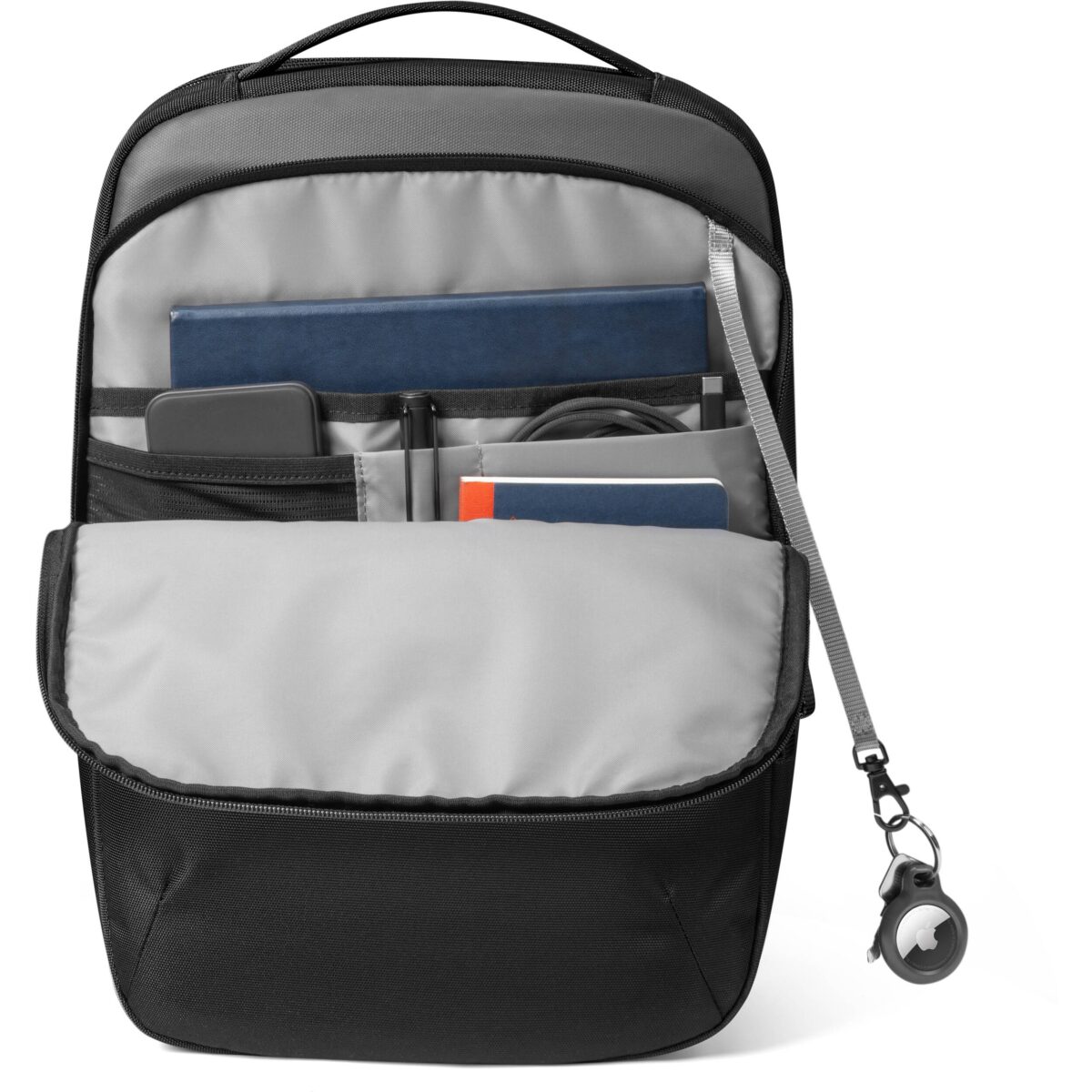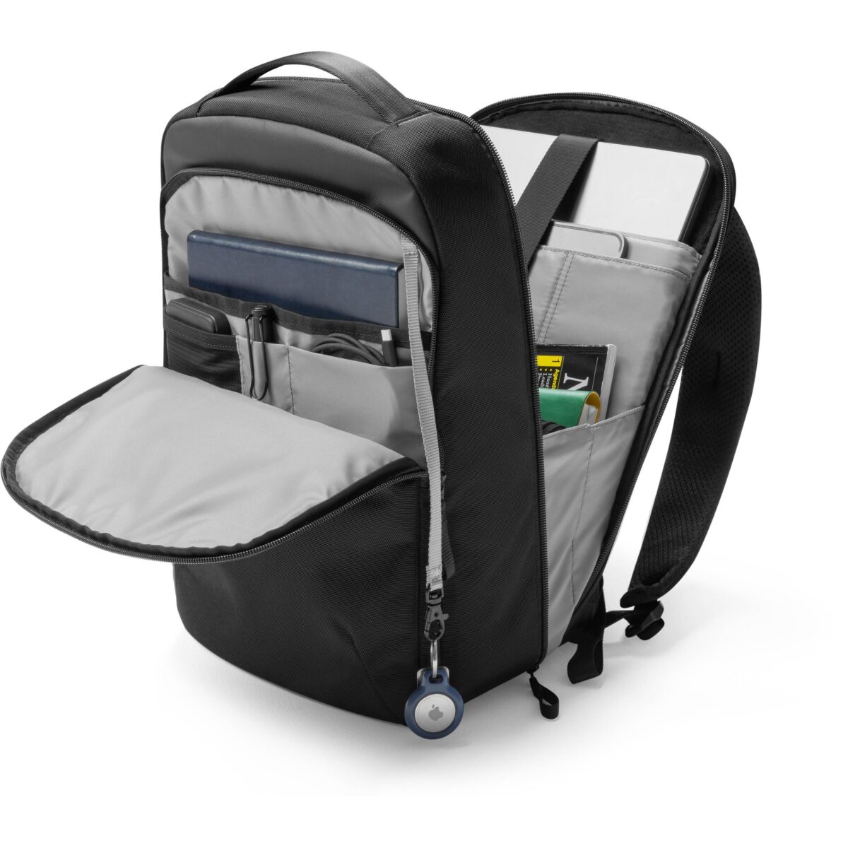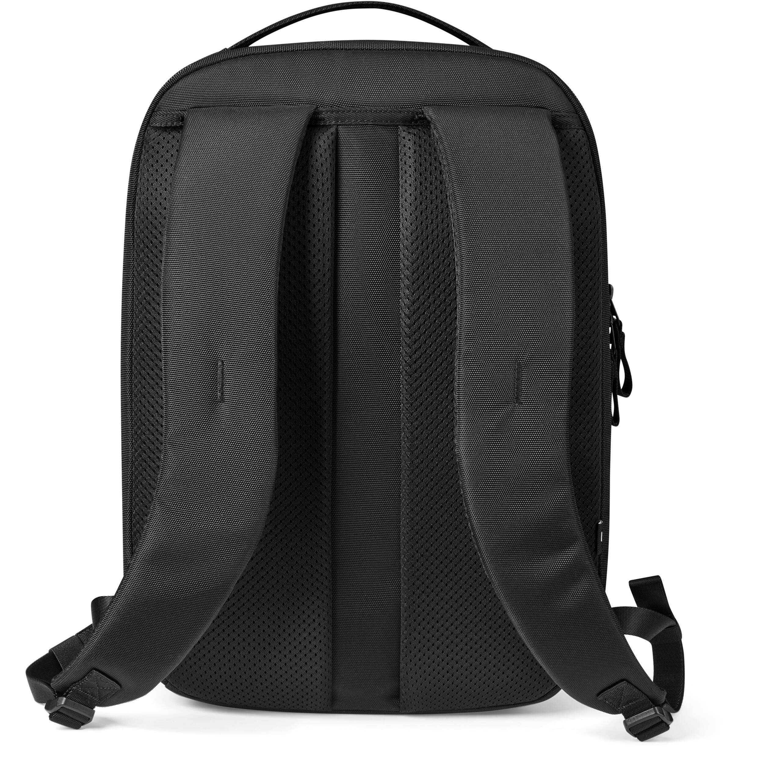 This functional backpack can expand quickly from 15L to 17L by adjustable buckles on the flap. It offers a spacious main compartment (with a water bottle holder and a zip pocket inside) and a separated padded tech compartment, roomy for your clothes, books, daily necessities, a 16“ MacBook, tablet, and accessories. An intimate front pocket adds a key ring for quick access.